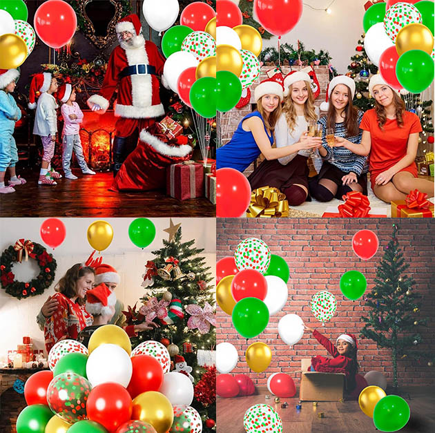niun®مجموعه بالون رنگی مخلوط کریسمسبر اساسبالون 12 اینچی لاتکس، و نمادهای بصری کریسمس به طور دقیق حک شده است: