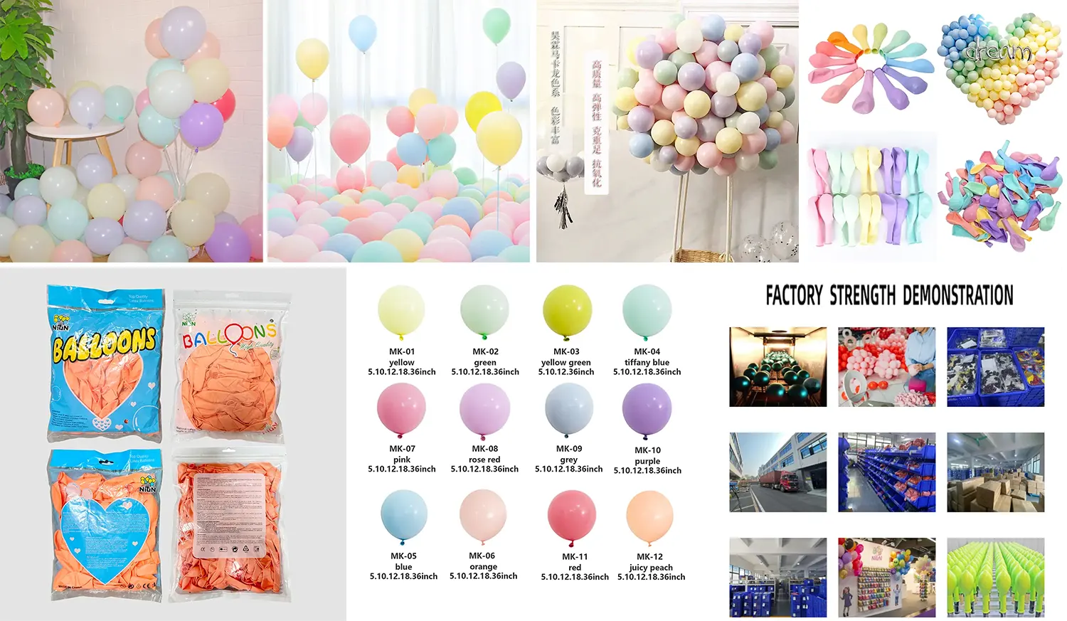 کارخانه کلاس جهانی: اتاق تمیز و کارگاه تولید کاملاً خودکار ، خروجی روزانه بیش از 1 میلیون ، بالون 5 اینچی ماکارون و دسته های دیگر (مانند بادکنک های فویل 10 اینچی ، 18 اینچی ، 36 اینچی ، بادکنک های چاپی) برای اطمینان از عرضه پایدار و تحویل سریع.