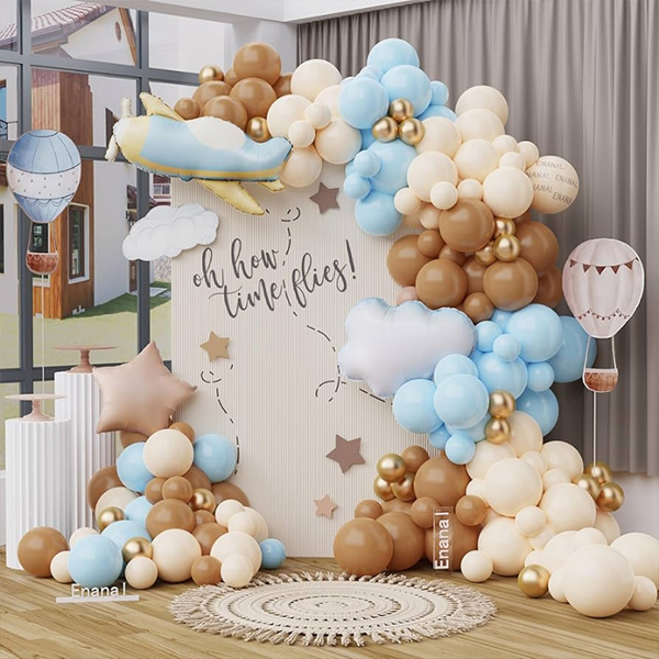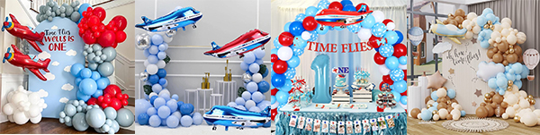 گلدسته بالون با بادکنک فویل هواپیما:این گلدسته بادکنکی با بادکنک فویل هواپیما از تشکیل شده استبادکنک های لاتکس, بادکنک های فویلی، لکه های چسب بادکنک، خطوط ماهیگیری و سایر لوازم جانبی بادکنک. استفاده از این لوازم جانبی می تواند به شما کمک کند تا به راحتی قوس بادکنکی ایجاد کنید. بادکنک های لاتکس و بادکنک های فویلی ما از لاستیک طبیعی و مواد فویل آلومینیومی با کیفیت بالا ساخته شده اند که ایمن و غیر سمی هستند و می توانند یک طاق گلدسته بادکنکی زیبا ایجاد کنند. این گلدسته بادکنکی برای صحنه های مختلف از جمله جشن تولد، مهمانی با تم هواپیما، مهمانی های با تم تایم فلیس و جشن های تعمید کودک مناسب است. برای اضافه کردن رنگ به هر جشنی عالی است.