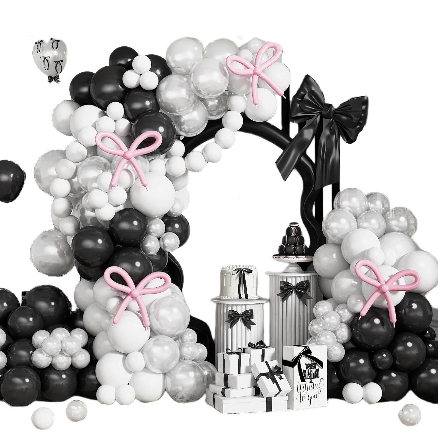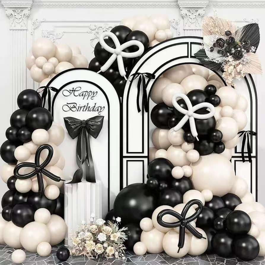 این گارلند قوس بالون کمان در حال حاضر در رنگ های مختلف بالون موجود است. جدیدترین قوس بادکنک سفید و سیاه ، یک انتخاب محبوب در بین مشتریان است ، زیرا محبوب ترین رنگ است. قوس تاج گل بالون سفید و سیاه به زیبایی با پس زمینه تولدت مبارک جفت شد. لهجه های کمان مجموعه قوس بالون جشن تولد را تقویت می کند و باعث ایجاد لمس درخشش و جذابیت به مهمانی شما می شود.