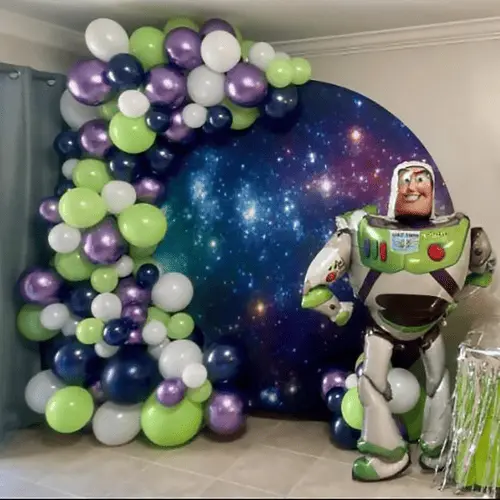 عمدتا از بادکنک لاتکس با کیفیت بالا تشکیل شده است و رنگ آنها سبز، بنفش، سفید، بریده بریده است. آنها رنگ اصلی Buzz Lightyear هستند. علاوه بر بادکنک لاتکس، بادکنک فویلی Buzz Lightyear نیز بخش مهمی است.