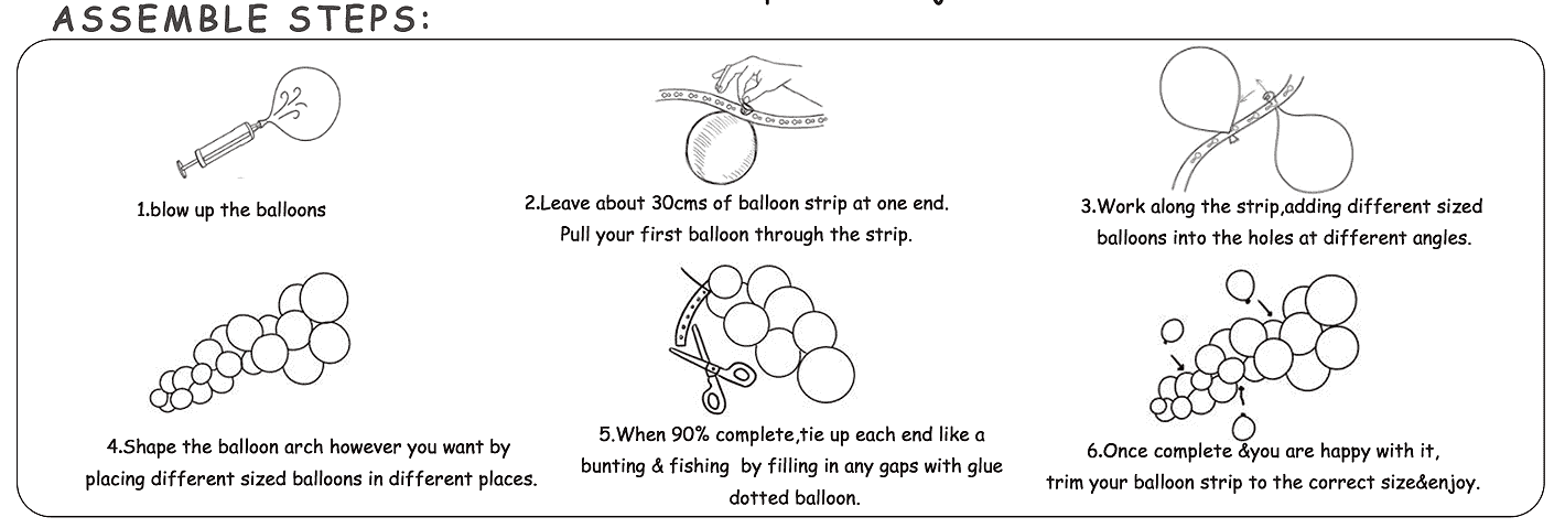این مجموعه شامل مجموعه کاملی از مواد مانند بادکنک های تم، زنجیر بادکنک، نقاط چسب، لوازم جانبی و غیره می باشد. خریداران می توانند بدون تطابق اضافی، آن را هنگام دریافت آن مونتاژ کنند. برای استفاده شخصی و خرده فروشی بسیار رقابتی است.