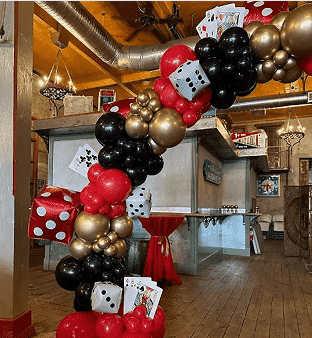 ما بهویژه یک حالت دوگانه از آرکهای بادکنکی با تم کازینو استاندارد و سفارشی را برای مشتریان خود ایجاد میکنیم که عمدتاً در تطابق طرح رنگ اصلی، انتخاب بادکنک فویل آلومینیومی و اجزای جانبی ارتقا یافته منعکس میشود.