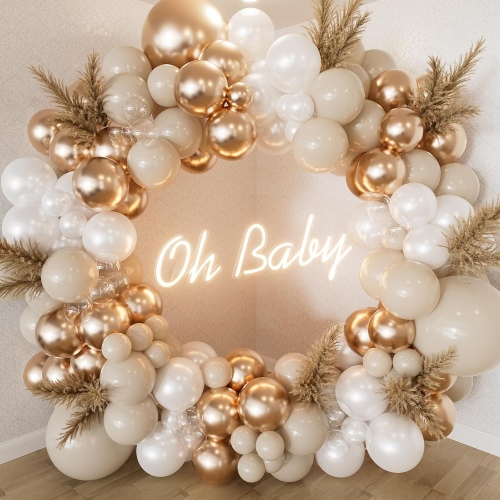 این طاق بادکنکی شامپاینی رنگ با دقت تزئین شده استبادکنک های لاتکسدر اندازه های 5 اینچ، 10 اینچ و 12 اینچ. اندازه های مختلف به خوبی در کنار هم چیده شده اند و جلوه ای زیبا و سه بعدی ایجاد می کنند. این باعث می شود کل قوس کامل و با کیفیت به نظر برسد. رنگ ملایم شامپاین به آن درخششی ظریف می بخشد و با طراحی ساده و شیک خود حال و هوای برازنده و رمانتیکی را ایجاد می کند. برای مهمانیهای گرانقیمت، عروسی یا رویدادها عالی است و بهعنوان بخش مرکزی واقعاً عالی به نظر میرسد.