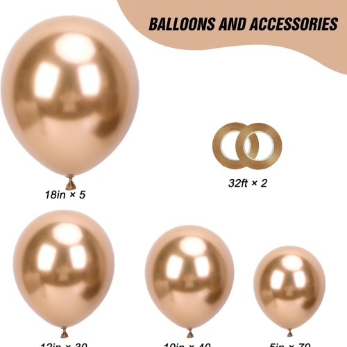 طاق بادکنک شامپاین شامل حداقل 100-150 بادکنک باکیفیت به مقدار کافی برای ایجاد یک چیدمان زیبا و با ظاهر کامل است. پس از مونتاژ، یک مهمانی زیبا و جوی ایجاد می کند. از عکس زیر می توانید ببینید.