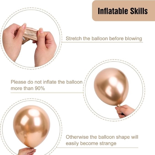 بادکنک های طاق بادکنکی شامپاین ما از لاتکس طبیعی با کیفیت بالا، با رنگ های روشن و خاصیت ارتجاعی خوب ساخته شده اند. آنها پس از باد شدن شکل کامل خود را حفظ می کنند و می توانند جلوه دکوراسیون را برای مدت طولانی حفظ کنند. محصولات دارای گواهینامه های ایمنی EN71-1/2/3، CE، CPC، مطابق با استانداردهای فروش جهانی هستند و برای همه مهمانی ها و رویدادها ایمن هستند.