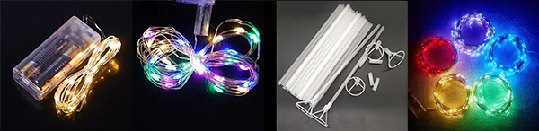 نوارهای نور LED، لوله پلاستیکی، فنجان بالون، پر |