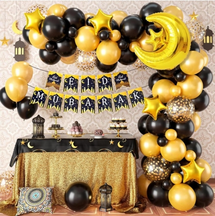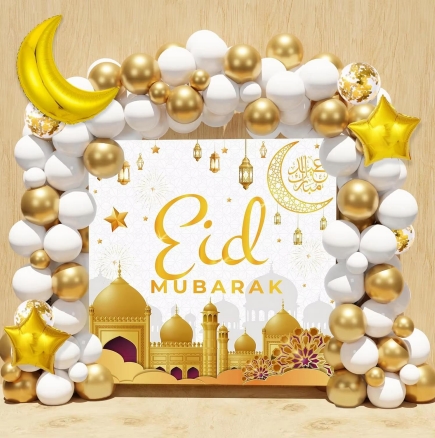 Niun® Brand Eid Al-Fitr Balloon Citland Cits معمولاً حاوی انواع مختلفی از موارد ، مانند بادکنک های لاتکس با مضمون عید و بالن های فویل در اندازه ها و رنگ های مختلف ، پس زمینه ، سفره ها ، خطوط ماهیگیری ، زنجیرهای بالون ، نقاط چسبنده یا برقی ، و غیره است. مصرف کنندگان