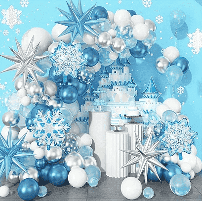 3.کیت های گلدسته بادکنک منجمدمعمولا شامل اندازه های مختلف ازبالن های یخ زده، بادکنک های فویلی منحصر به فرد، روبان های تزئینی مطابق، بادکننده ها، لکه های چسب بدون علامت، کراوات نصب و سایر لوازم جانبی برای برآورده کردن الزامات چیدمان در یک مرحله. تمام اجزا از مواد ایمن و سازگار با محیط زیست ساخته شده اند که کاملاً با صحنه های فعالیت کودکان سازگار است. الگوی بادکنک در کت و شلوار به دقت مطابقت دارد و تصویر شخصیت کلاسیک Frozen را با عناصر رویایی یخ و برف ترکیب می کند. رنگ های آبی، سفید و نقره ای، فضای جادویی ناب و رمانتیکی را ایجاد می کنند.