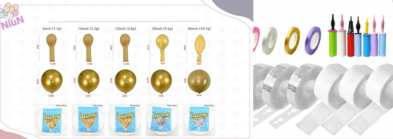 طاق دارای زنجیره بادکنک Niun®، نقاط چسب و خط ماهیگیری است. کاربران می توانند آن را به هر شکلی متناسب با فضا بسازند. می توان آن را به عنوان یک کیت حلقه گل یا تزئین دیوار درست کرد. می تواند باعث شود کل شکل لایه های بیشتری داشته باشد. ترکیب اندازه های بادکنک باعث می شود شکل سه بعدی و زنده تر به نظر برسد. ما همچنین می توانیم قطعات اضافی بادکنک را بدهیم یا مقادیر سفارشی را تنظیم کنیم. می تواند نیازهای مختلفی را برای صحنه های مختلف دکوراسیون برآورده کند.