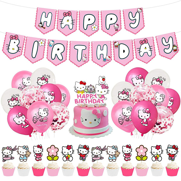 لوازم مهمانی با تم Hello Kitty شامل یک مجموعه دکوراسیون کامل است که برای مهمانی های تعطیلات طراحی شده است و به شما کمک می کند تا به سرعت فضایی گرم، شاد و جشن ایجاد کنید.