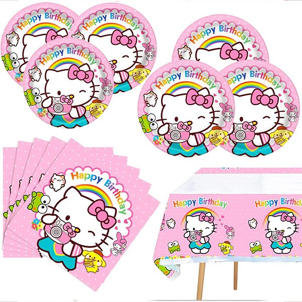 3) ظروف غذاخوری: ظروف Hello Kitty را هنوز هم می توان با طرح های منحصر به فرد لوازم مهمانی صورتی و سفید ست کرد تا فضایی زیبا برای مهمانی شما ایجاد کند. تمام محصولات بسیار بادوام، رنگ های روشن و کیفیت بالایی دارند.
