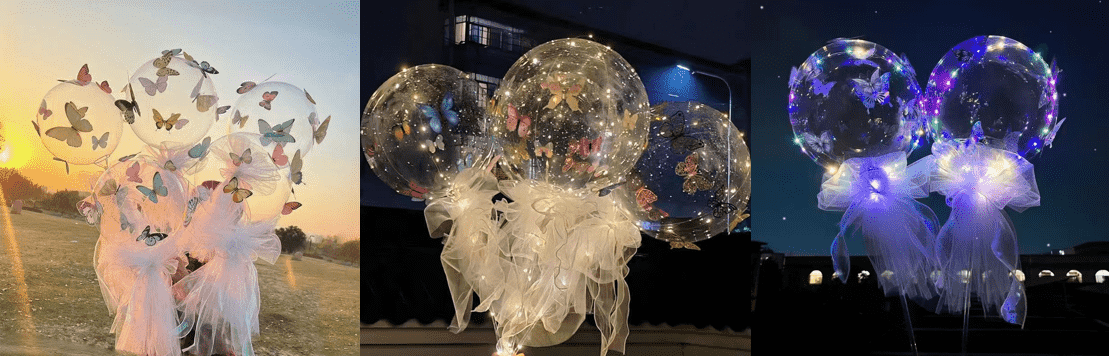 کیت های بالون (از جمله بالن های معمولی با اندازه های مختلف ، زنجیرهای بالون و تورم) محصولات مهمی برای دکوراسیون مانند جشنواره ها و جشن ها هستند ، اما یک کیت واحد ضخیم و سنگین است. برچسب های پروانه توخالی می توانند سطح طرح را از طریق تزئین دسته ای و تمرکز محلی غنی کنند و طرح در مقیاس بزرگ انعطاف پذیر تر شود.