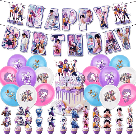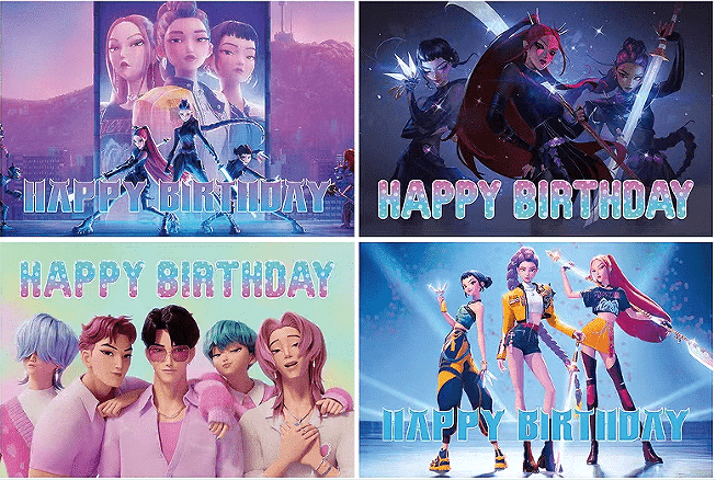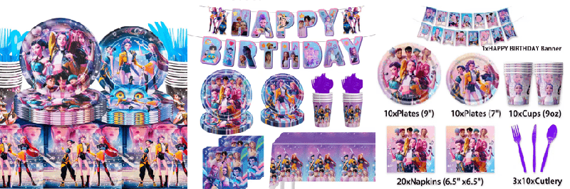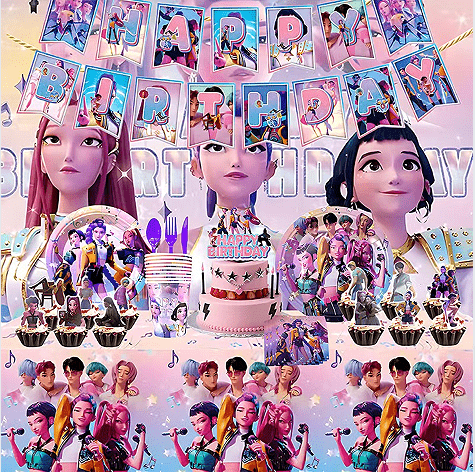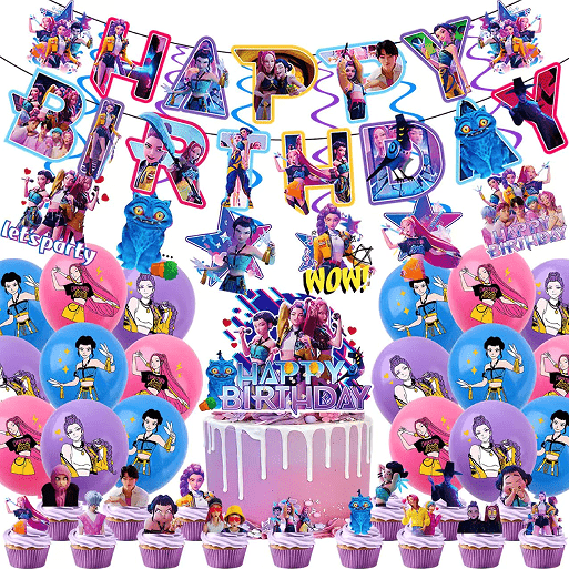 جشن تولد: چه کودکان و چه بزرگسالان، می توانند با ست دکوراسیون پارتی شکارچیان شیاطین K-POP، پارچه پس زمینه، پلاگین کیک و سایر تزیینات فضایی شاد ایجاد کنند.