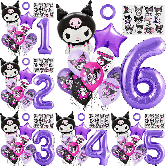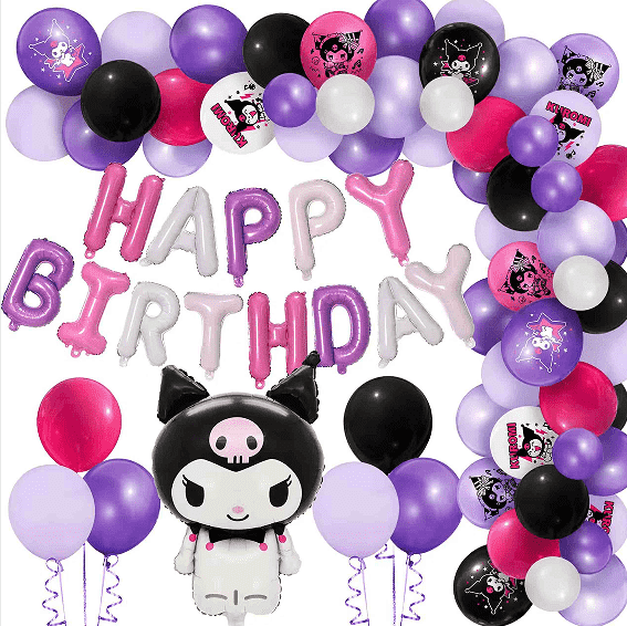 1. بادکنک مهمانی Kuromi سفارشی: سفارشی سازی بادکنک فویل (الگوی و شکل) ، چاپ بالون لاتکس و طراحی سبک از مجموعه بالون و تاج را تهیه کنید.