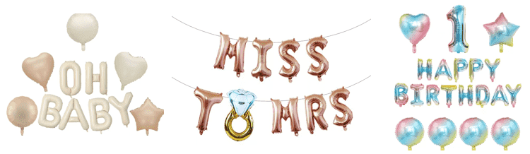 بالون فویل حرف با سایر اشکال عشق بادکنک ، ستاره ها ، کارتون ها و آرم مطابقت دارد که می تواند یک بافت یکپارچه را حفظ کرده و از مخلوط و درهم و برهمی جلوگیری کند. در عین حال ، موضوع از طریق مدل سازی نامه تقویت می شود ، که برای مهمانی های تولد و فعالیت های سازمانی مناسب است.