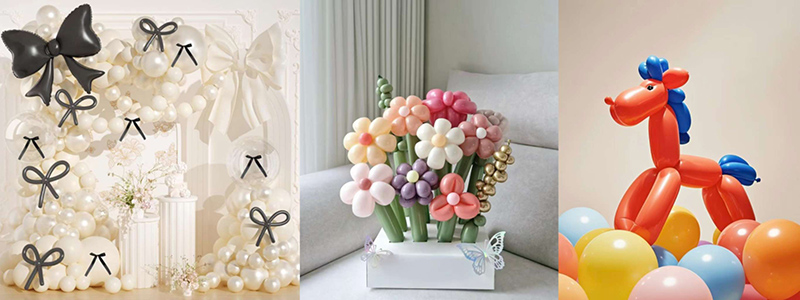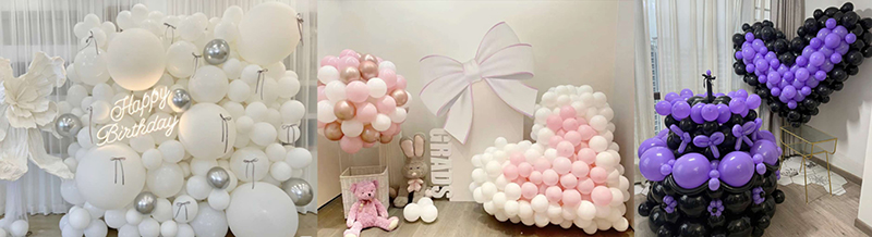 از اندازه های مختلف می توان با هم استفاده کرد. از بالن های کوچک می توان به عنوان جزئیات دکوراسیون استفاده کرد. بادکنک های بزرگ را می توان برای یک قوس بادکنک یا یک گلدان بادکنک استفاده کرد. این اثر چشمگیر به نظر می رسد. هنگامی که با بادکنک های بابو ، بادکنک های رنگی فلزی یا بادکنک های فویل استفاده می شود ، ظاهر لایه های بیشتری دارد. سبک ثروتمندتر می شود. استفاده بسیار گسترده است. می توان در عروسی ها استفاده کرد. می توان از آن در مهمانی های تولد استفاده کرد. همچنین می تواند در رویدادهای تعطیلات استفاده شود. این به عنوان یک دکوراسیون اصلی یا دکوراسیون جزئیات کار می کند.