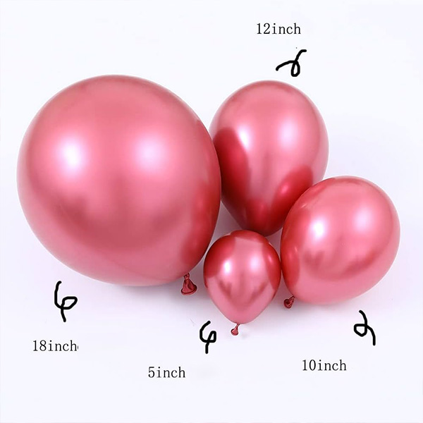 بادکنک های فلزی درخشندگی فلزی دارند، بافتی قوی دارند، حس لوکس بودن را برجسته می کنند، کیفیت بصری را افزایش می دهند و مجلل تر به نظر می رسند. آنها برای دکوراسیون مهمانی و پس زمینه عکاسی مناسب هستند.