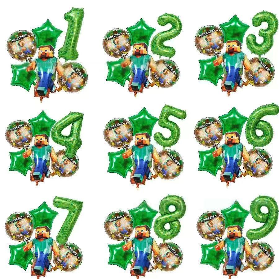 بادکنک های فویل شماره Minecraft از الگوهای پیکسل چمن و لایه های خاک در بازی الهام گرفته شده است. آنها در شکل های سبز قرار دارند و 1 تا 9 را پوشش می دهند. بافت پیکسل روی شماره ها سبک بازی را کپی می کند. آنها را با بلوک های چمن و بادکنک های ستاره جفت کنید. نمایشگر سن همچنین دارای ظاهر Minecraft است. آنها یک برجسته جالب برای مهمانی های تولد هستند.