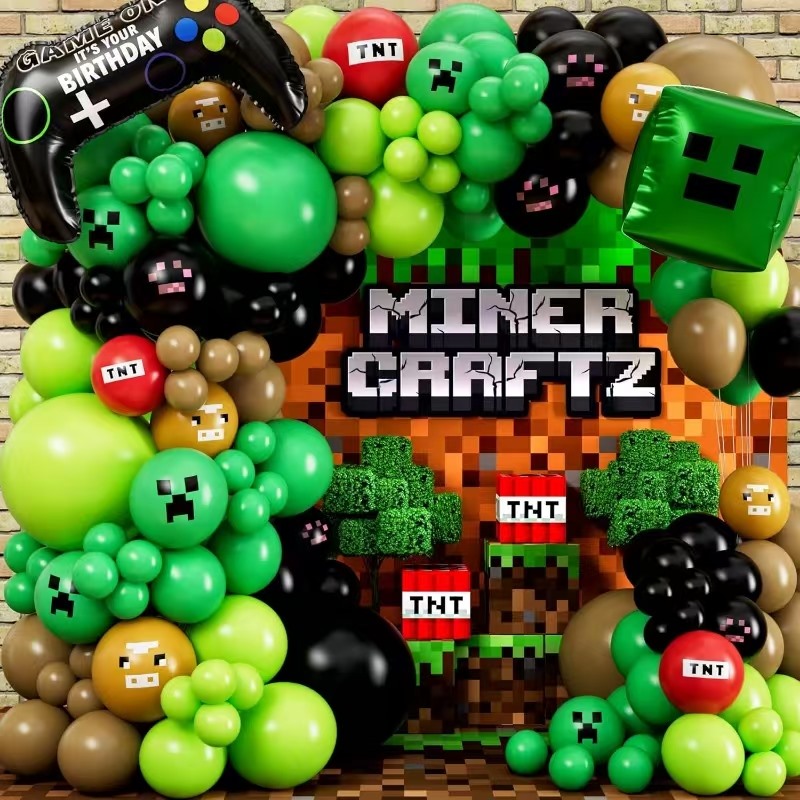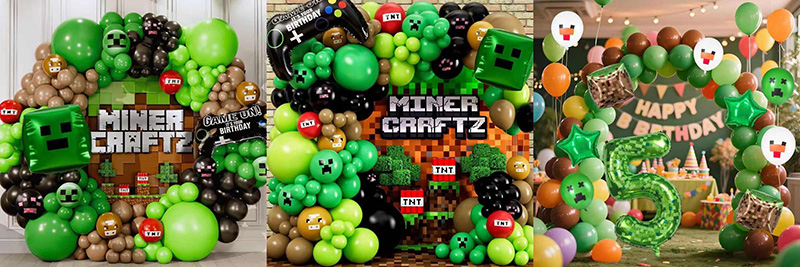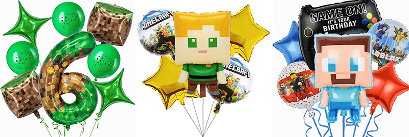 بادکنک های فویل مخصوص Minecraft با استفاده از عناصر بازی. آنها اشکال شخصیت سه بعدی زیادی دارند. شخصیت ها شامل استیو ، کرپر و اندرمن هستند. هرکدام جزئیات بازی را کپی می کنند. همچنین مواردی مانند شمشیر الماس ، بلوک TNT و کنترل کننده های بازی وجود دارد. آنها تزئینات مهمانی را سرگرم کننده تر و غنی تر می کنند. هر بالون از سبک پیکسل استفاده می کند. Creeper دارای بدنه بلوک سبز است. استیو پیراهن آبی دارد. جزئیات باعث می شود دنیای بلوک احساس کند که در مهمانی واقعی است.
