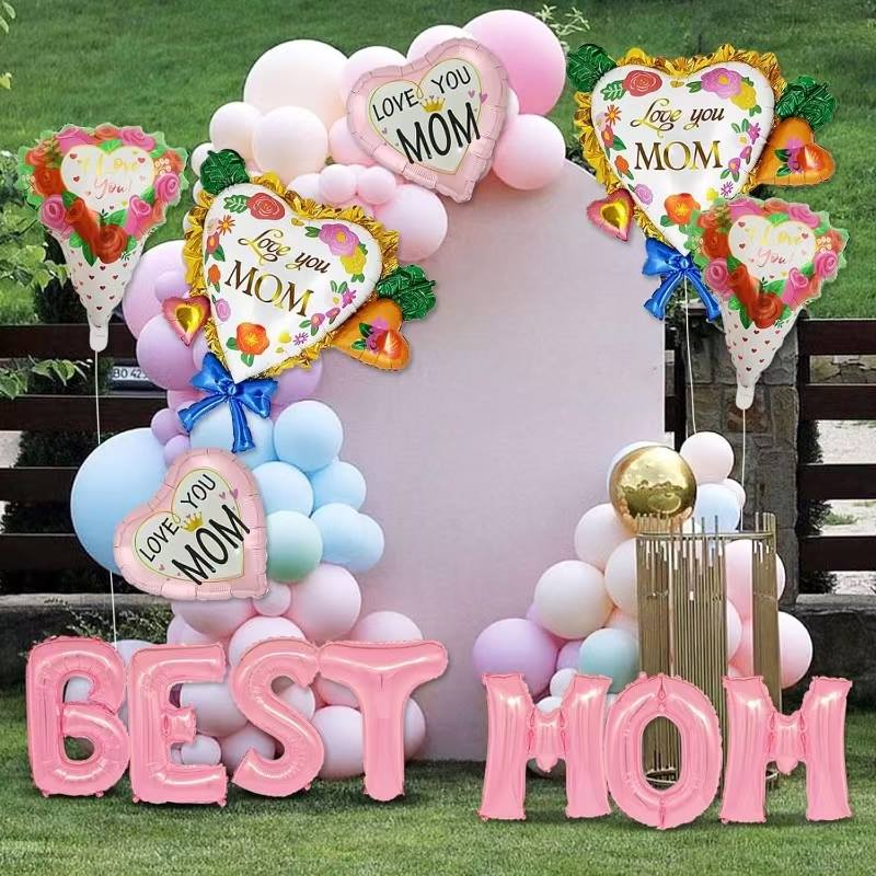 3. بادکنک فویل نامه ای روز مادر: بادکنک های فویل نامه ای روز مادر نیروی خلاقی برای ایجاد احساس خاص در سنت های تعطیلات هستند. آنها به شکل حروف سه بعدی ساخته شده اند. آنها در ترکیبات بسیاری مانند "روز مادر مبارک" و "مادر" آمده اند. آنها رنگ های گرم خوبی مانند رزگلد، طلایی و صورتی دارند. می توانید آنها را با تزییناتی مانند بادکنک های فویل ستاره ای و قلب تطبیق دهید. آنها واقعا متمایز به نظر می رسند و به راحتی قابل توجه هستند.