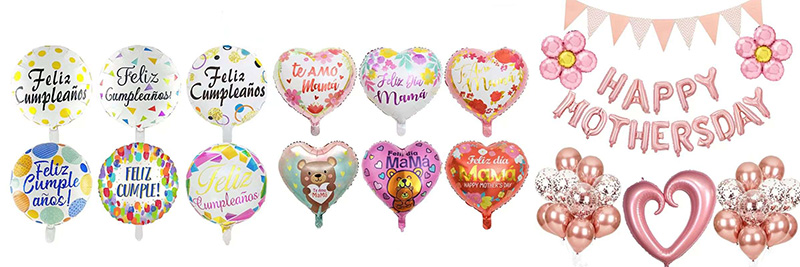 1. بادکنک فویلی گرد روز مادر:بادکنک فویلی روز مادردکوراسیون انتخاب های خوبی برای زنده کردن حال و هوای تعطیلات است. آنها بر اساس شکل گرد کلاسیک هستند. سطوح آنها از کار چاپ رنگی شفاف استفاده می کند. این بادکنک های فویلی روز مادر با عبارت «دوستت دارم مامان» و «فلیز دیا ماما» چاپ شده است. آنها الگوهای دوست داشتنی زیادی روی خود دارند. رنگ ها روشن هستند و به راحتی محو نمی شوند. درخشش نرم فلزی باعث می شود که بادکنک ها وقتی نور به آنها برخورد می کند زیباتر به نظر برسند.