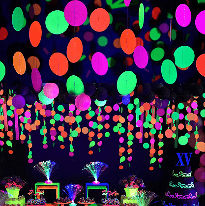 طاق بالون نئون درخشش نئونی قوی را در زیر نور بنفش/سیاه نشان می دهد.