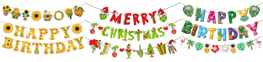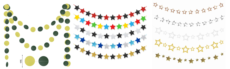 بنر کاغذی یک تزئین رایج است که از کاغذ ساخته می شود، از طریق نخ یا روبان با تعدادی الگو، متن بنر به صورت سری چاپ می شود، برای ایجاد جشنواره ها، فعالیت ها و مناسبت های دیگر فضا استفاده می شود.