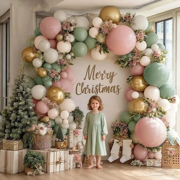 کیت طاق گارلند بالن صورتی و سبز:این گلدسته بادکنکی برای تمامی مواقعی که نیاز به بادکنک دارند مناسب است، شیک و جذاب است.تعداد آن 120 عدد تا 150 عدد می باشد و با توجه به نیاز شما قابل تنظیم است.