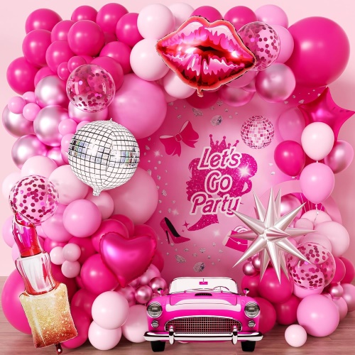 این ست ها شامل بادکنک های لاتکس صورتی مات 5 اینچی و 12 اینچی، بادکنک های لاتکس صورتی مرواریدی 5 اینچی و 12 اینچی، بادکنک های لاتکس صورتی متالیک 5 اینچی و 12 اینچی، بادکنک های لاتکس سفید 5 اینچی و 12 اینچی، بادکنک های لاتکس سفید 5 اینچی و 12 اینچی، بادکنک های لاتکس صورتی 18 اینچی و بالون های صورتی 18 اینچی هستند. بادکنک ها، بادکنک های فویلی ستاره ای 18 اینچی، پرده فویلی صورتی، بادکنک های فویلی تولدت مبارک صورتی، تزئینات پروانه ای و لوازم جانبی مانند نقطه های چسب، نوار بادکنک و روبان.