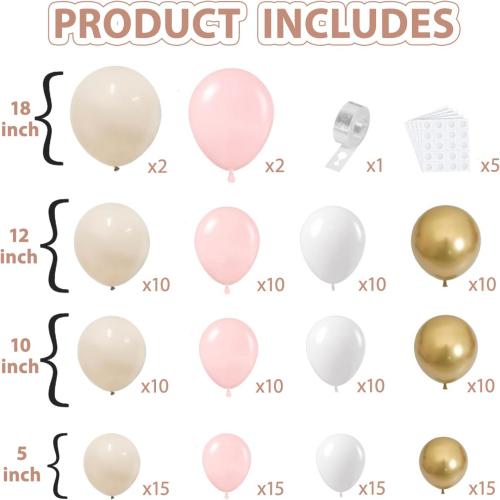 کیت قوس بادکنکی سفید صورتی بژ برند NiuN از بادکنک های لاتکس با کیفیت بسیار بالاتری نسبت به همتایان خود استفاده می کند.