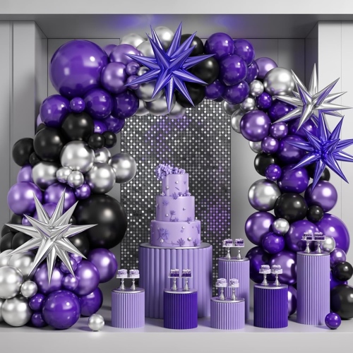 کیت های گلدست بادکنک های بنفش و مشکی با کیفیت بالا به شما این امکان را می دهد که بادکنک های مشکی و بنفش را با هم ترکیب کنید. آنها را می توان با بادکنک های سیاه و بنفش با بادکنک های نقره ای یا بادکنک های فویل نقره ای ترکیب کرد تا کیت های قوس گلدسته بادکنک ها را برجسته کند. برای مهمانیهای فارغالتحصیلی، مراسم بزرگسالان و سایر جشنهای مهم، ایدهآل است، که در هنگام خداحافظی با جوانی و قدم گذاشتن در بزرگسالی، حس تشریفات را تجسم میدهد. آنها همچنین می توانند بادکنک های سیاه و بنفش را با بادکنک های طلایی یا بادکنک های فویل طلایی ترکیب کنند. برای مناسبتهایی مانند سالگردهای شرکتی و افتتاح فروشگاههای جدید ایدهآل است، زیرا حرفهای بودن و پیچیدگی را در خود دارد و در عین حال تصویر برند معتبر و با کیفیتی را به شما منتقل میکند. آنها همچنین می توانند با بادکنک های آبی ترکیب شوند تا ظاهری آینده نگر ایجاد کنند. این کیتهای بادکنک مخصوصاً برای ورزشهای الکترونیکی، مهمانیهای مد روز و علمی تخیلی مناسب هستند و تأثیر بصری قابل توجهی را ارائه میدهند.