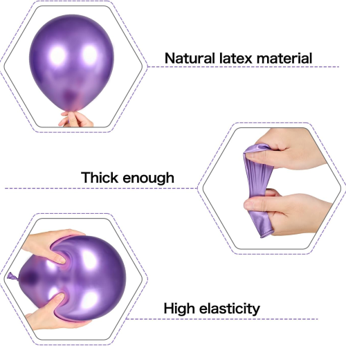 تعداد و وزن کیت های گلدسته بادکنک های بنفش و مشکی ما بیشتر از برندهای دیگر است. هر یک از کیتهای طاق گلدسته ما حداقل 100 بادکنک دارد. هر اندازه بادکنکی که ما ارائه می کنیم از وزن گرم صنعتی استاندارد استفاده می کند. به عنوان مثال، وزن گرم بادکنک های 12 اینچی 2.8 گرم است. ما همچنین می توانیم وزن گرم بادکنک را در صورت داشتن شرایط خاص تنظیم کنیم. همانطور که از تصاویر زیر می بینید، تنها یک ست بادکنک ما برای ایجاد یک صحنه مهمانی شیک و جوی به راحتی کافی است.