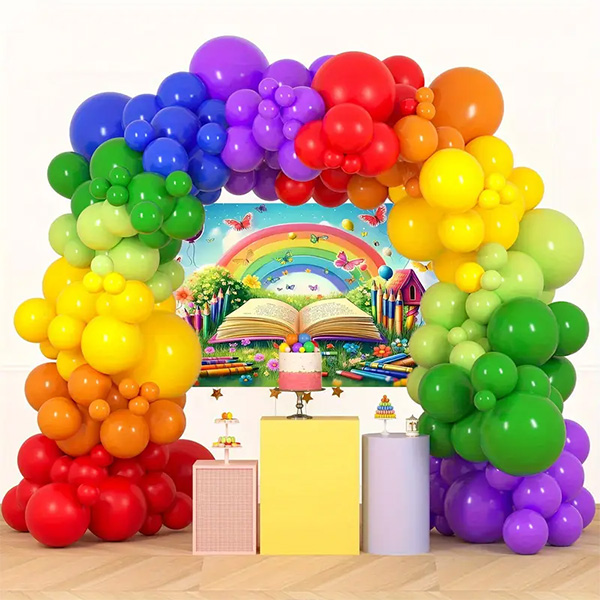 این کیت حلقه گل بالن رنگین کمانی از بادکنک های رنگارنگ لاتکس ساخته شده است. رنگ های پر جنب و جوش آن را برای تزیین جشن تولد کودکان عالی می کند. کیت های گلدسته بالون رنگین کمان سفارشی در سبک های مختلف موجود است. شما می توانید کیت گلدسته بالون رنگین کمانی سفارشی خود را سفارشی کرده و آن را به سبک دلخواه خود مونتاژ کنید. با خیال راحت شکل منحصر به فرد خود را ایجاد کنید و با آن آزمایش کنید تا رویداد بعدی خود را به موفقیت کامل برسانید.