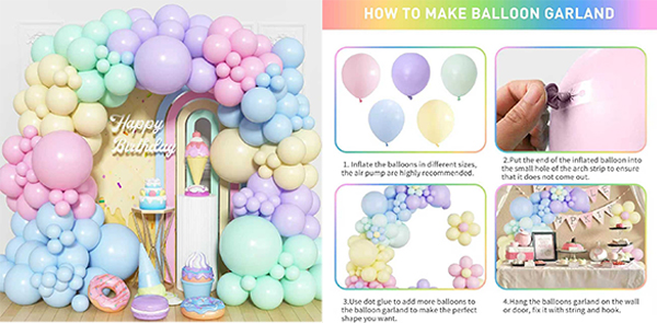 کیتهای قوس گارلند بالونهای رنگینکمان آسان کنونی ما با کارتهای دستورالعمل ارائه میشوند که به شما این امکان را میدهد تا به راحتی هر دکوراسیونی را بدون صرف زمان زیادی برای مونتاژ ایجاد کنید. این به شما این امکان را می دهد تا در عین صرفه جویی در زمان ارزشمند، لذت DIY را تجربه کنید. ما همچنین استفاده از پمپ الکتریکی را برای مونتاژ کارآمدتر توصیه می کنیم!