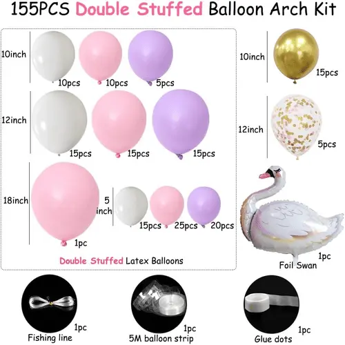 ما لوازم جانبی مختلفی را برای طاق بادکنک سوان اضافه خواهیم کرد. از جمله چسب نقطه، نوار بادکنک و روبان. علاوه بر آن، ما همچنین می توانیم لوازم جانبی دیگر را به عنوان درخواست شما اضافه کنیم.