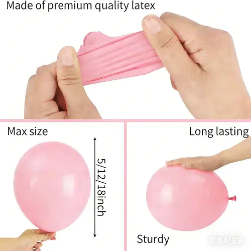 با توجه به مواد اولیه ای که استفاده می کنیم و مواد چاپ ایمن، بادکنک ها کاملا سازگار با محیط زیست هستند و برای کودکان و بزرگسالان بی ضرر هستند. رنگ آنها بیشتر رنگ روشن است، مانند صورتی، بنفش، سفید، شفاف. بادکنک های طلایی متالیک نیز اضافه شده و طاق را جذاب تر می کند.