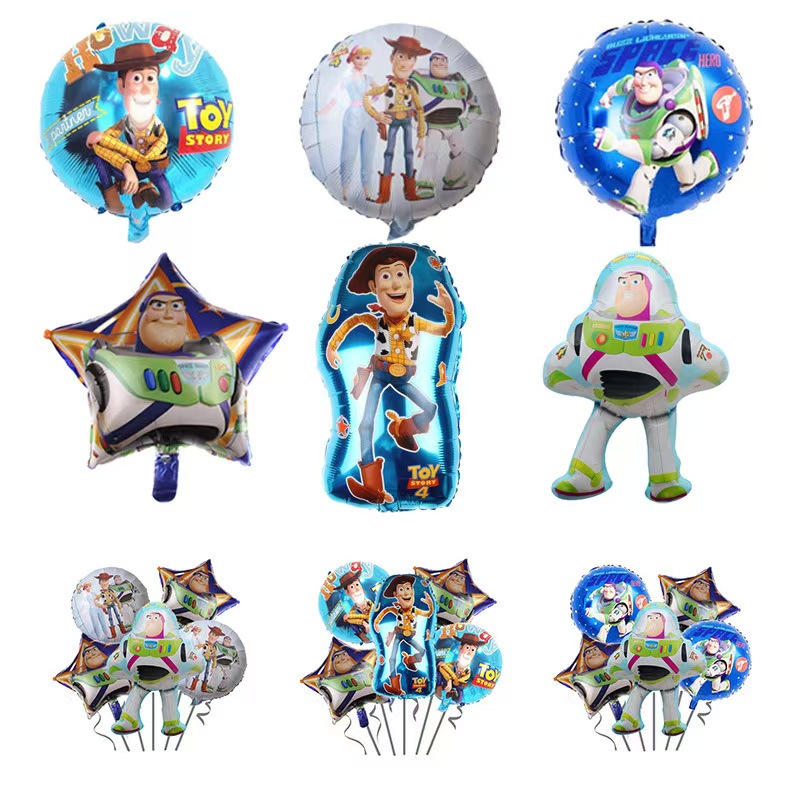 این طراحی شخصیت های کلاسیک داستان اسباب بازی را نشان می دهد. Buzz Lightyear عناصر فضایی دارد. وودی سبک کابوی دارد. جسی ظاهری فعال دارد. همه اینها به روشی پر جنب و جوش ساخته شده اند. بالن ها دارای شکل ستاره ، شکل های گرد و شکل شخصیت هستند. یک بالون منفرد می تواند برجسته باشد. مجموعه ای از بادکنک های مختلف فویل داستان اسباب بازی می توانند جزئیات و لایه های بیشتری را اضافه کنند. آنها می توانند یکباره موضوع داستان اسباب بازی را روشن کنند.