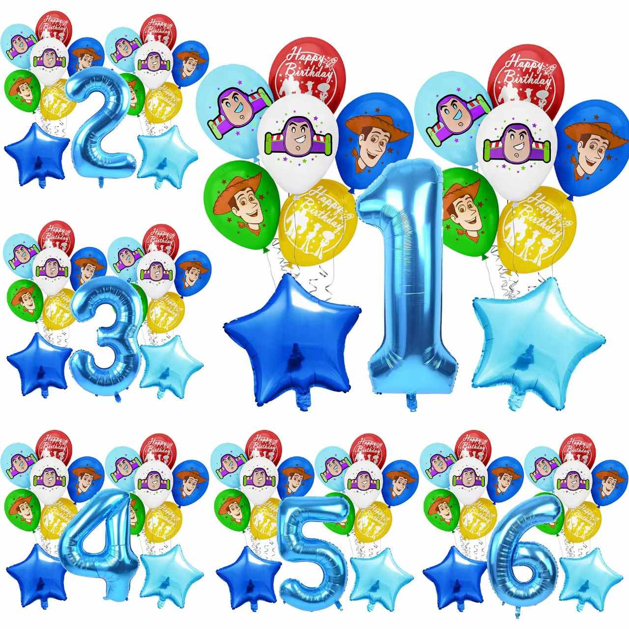 بالن های لاتکس داستان اسباب بازی به عنوان رنگهای اصلی از آبی ، زرد ، سبز و قرمز استفاده می کنند. آنها ابرهای سفید و چاپ شخصیت ها را نشان می دهند. ظاهر با سبک فیلم مطابقت دارد و دانستن آن آسان است. آنها انتخاب خوبی برای دکوراسیون مهمانی هستند. ساخته شده از لاتکس طبیعی ، مواد ایمن و سازگار با محیط زیست هستند. بادکنک ها به خوبی کشیده می شوند ، بعد از پر کردن دور و پر می شوند و به راحتی ظاهر نمی شوند. آنها متناسب با مهمانی های بچه ها هستند.