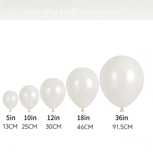 اندازه های معمولی بادکنک های مرواریدی سفید موجود در انبار: 5،10،12،18،36 اینچ (گرد). اندازه های سفارشی از 10 تا 36 اینچ و همچنین بادکنک های مروارید مرواریدی سفارشی در دسترس هستند. MOQ قابل مذاکره است.
