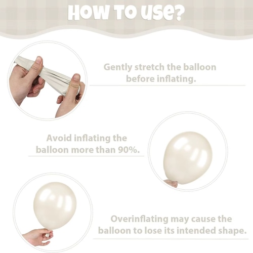محدوده مقاومت دمایی بادکنک های رنگ سفید مرواریدی 0-35 درجه سانتیگراد است. از استفاده از آنها در نور مستقیم خورشید، پخت و پز در دمای بالا، محیط های یخبندان با دمای پایین خودداری کنید. برای استفاده در فضای باز توصیه می شود مکان سایه دار را انتخاب کنید در غیر این صورت پیری را تسریع کرده و باعث پارگی می شود.